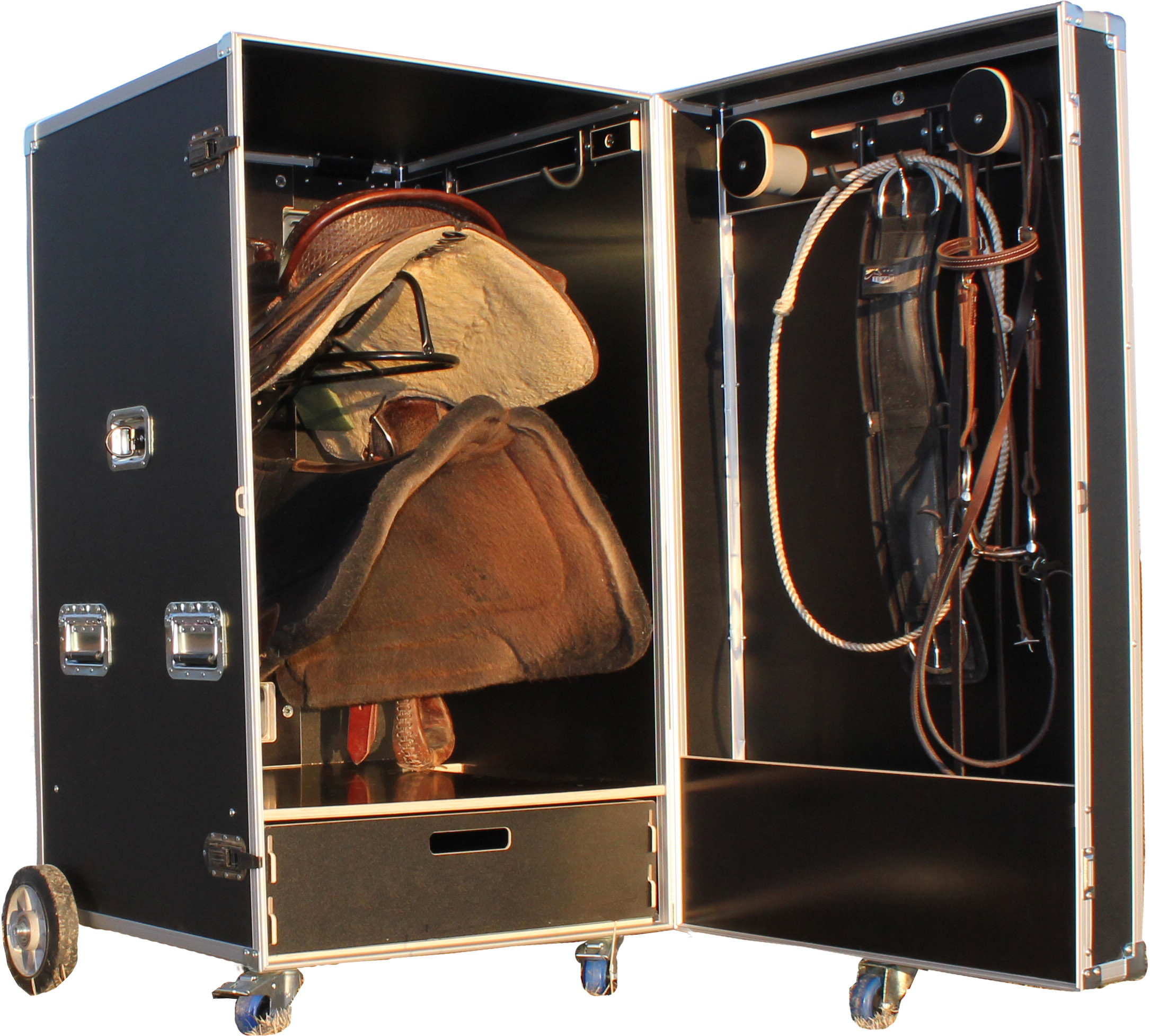 Inspired by equestrian sports, we have worked with professionals to develop a range of storage and competition cabinets. The cabinets are made from durable Finnish plywood with aluminium profiles and top quality metal fittings.