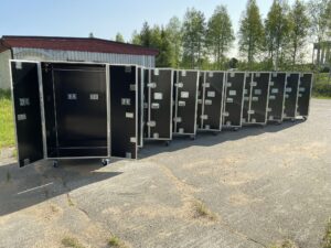 Portabla garderober tillverkade i 9 mm plywood eller 7mm lättviktsmaterial.